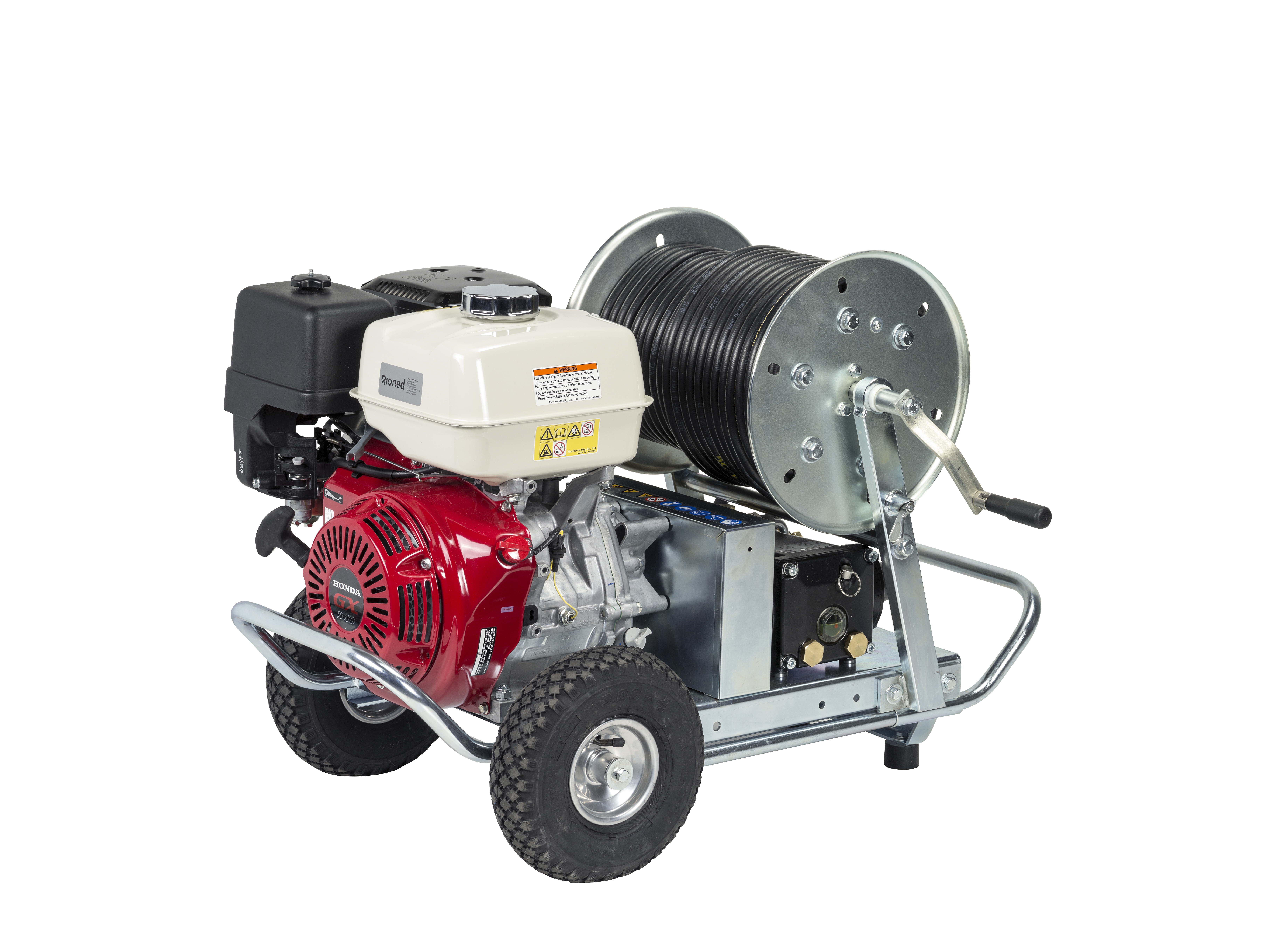 מכונה לניקוי צינורות ביוב ומשטחים בלחץ מים גבוה מדגם "הד– 30" תוצרת חברת "ריאונד" הולנד, המתאימה לצנרת בקוטר עד "8 . המערכת מורכבת על בסיס בעל 2 גלגלים וניתנת לניוד ללא מאמץ.