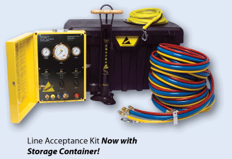 ערכה לביצוע בדיקות קבלה לצנרת ביוב חדשה לאחר הנחתה באמצעות לחץ אוויר נמוך. ערכה כוללת את כל המרכיבים הנדרשים לביצוע הטסט וכוללת לוח בקרה ומדי לחץ, כבלים מתאימים ומשאבה לניפוח הפקקים. בנוסף לערכה על מנת לבצע את בדיקת הקבלה יש לאטום את הצינור עם 2 פקקים פניאומאטיים מתאימים ולחבר קומפרסור. לוח הבקרה מצויד ב 3 מדי לחץ למדידת לחץ האוויר בצינור, בפקק ובקומפרסור ומצויד בווסתים לצורך שליטה ובקרה בלחצים. לוח הבקרה מגיע מזווד בארגז מתכת עמיד.
